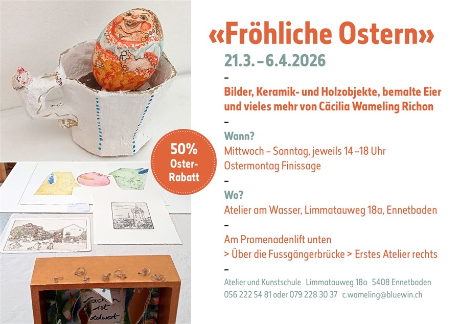 in einem idyllisch gelegenen Atelier im Herzen von Baden/Ennetbaden, direkt an der Limmat.